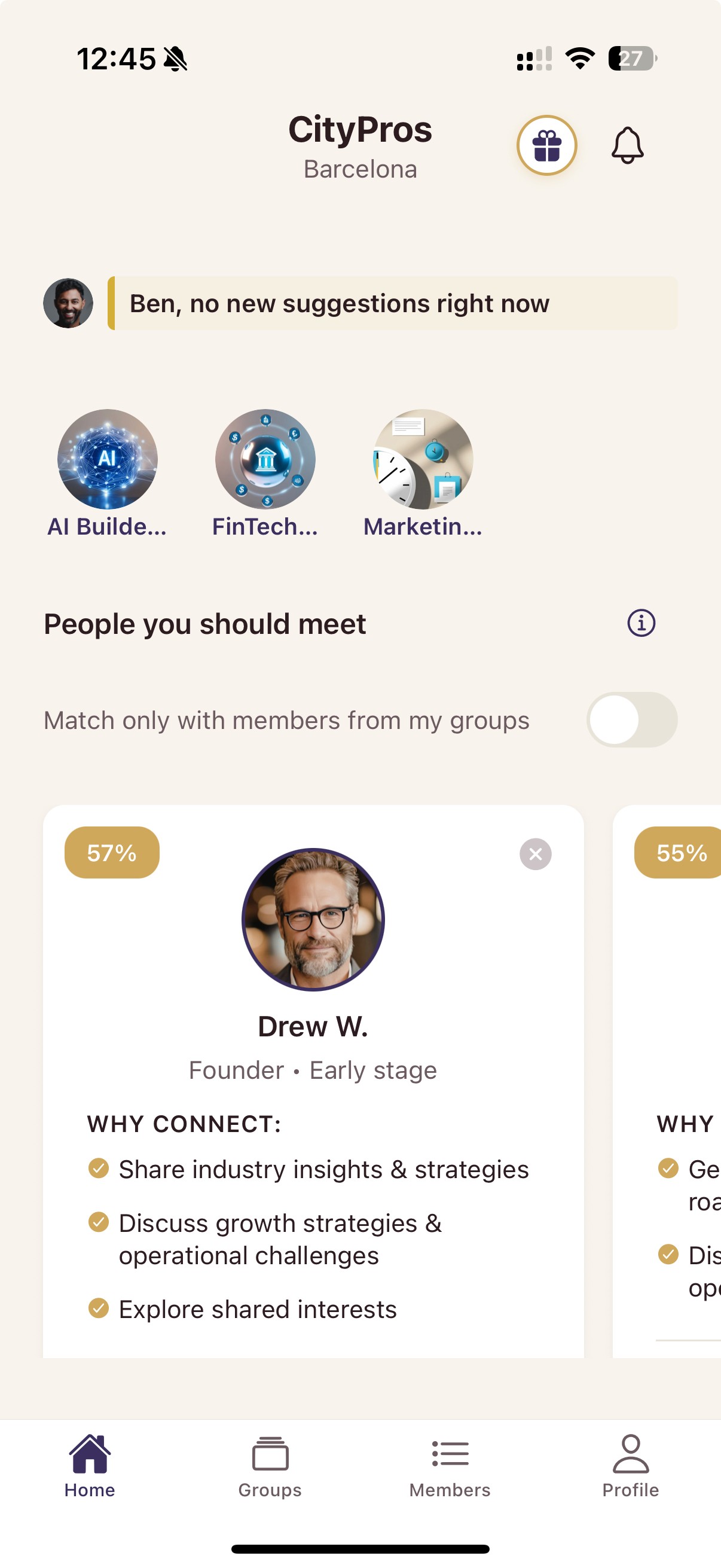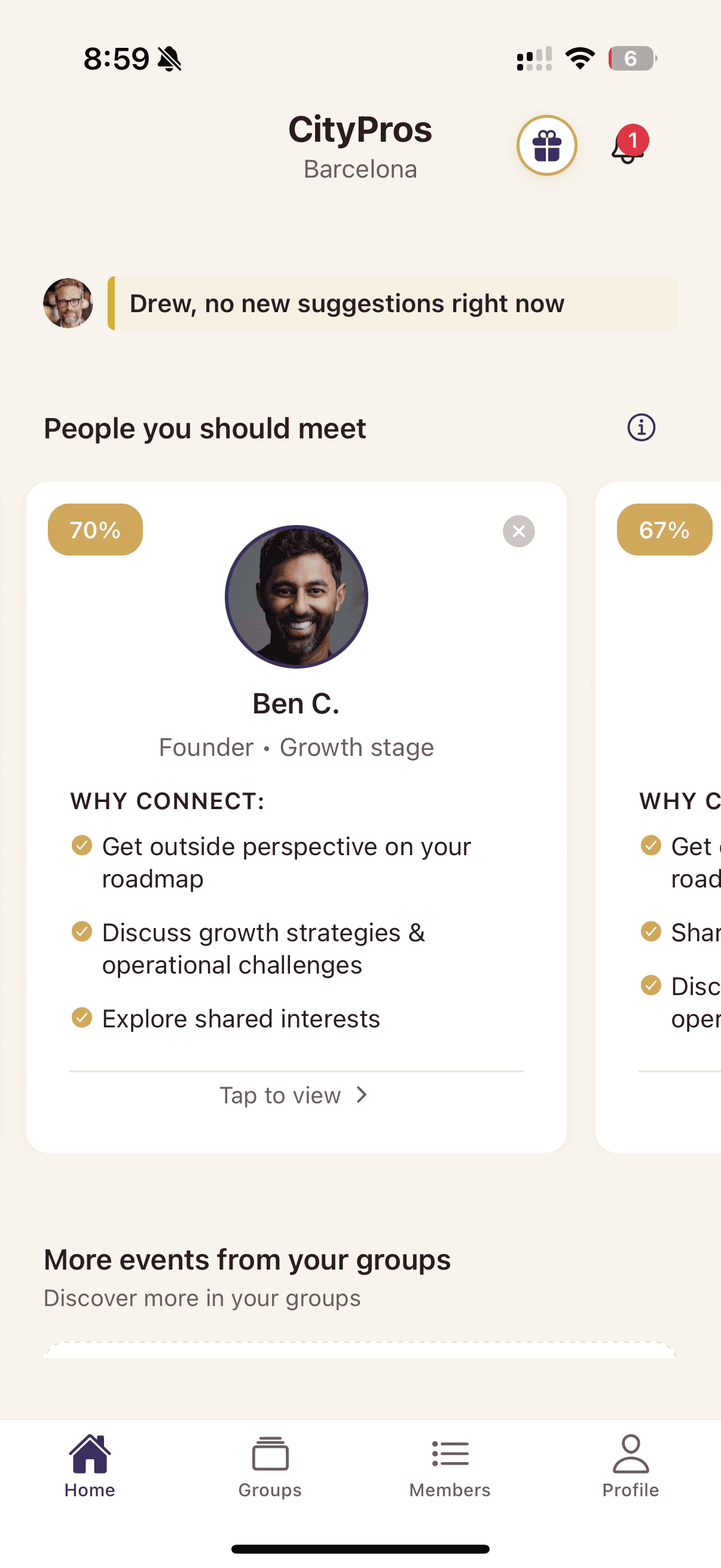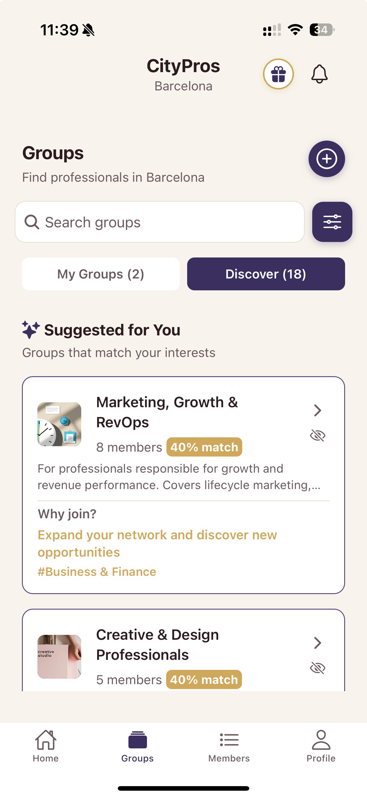 For City Professionals: Smart matching connects you to the most relevant people, groups, and events in your city.